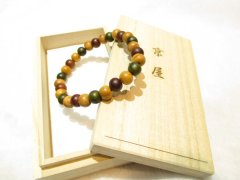 パワーストーン京屋/【レディース】《世界最高レベル》【天然木】【檜(ひのき)】《国産(奈良県吉野山)》8mm マルチカラー紐編み房付きブレスレット 桐箱付き【伏見・京都】