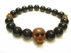 パワーストーン・京都/【金運上昇、魔除け】【ルチルクォーツ(針水晶)】【スカル(髑髏)】【天然木 柘植】10mmブレスレット桐箱付き【天然石の京屋】