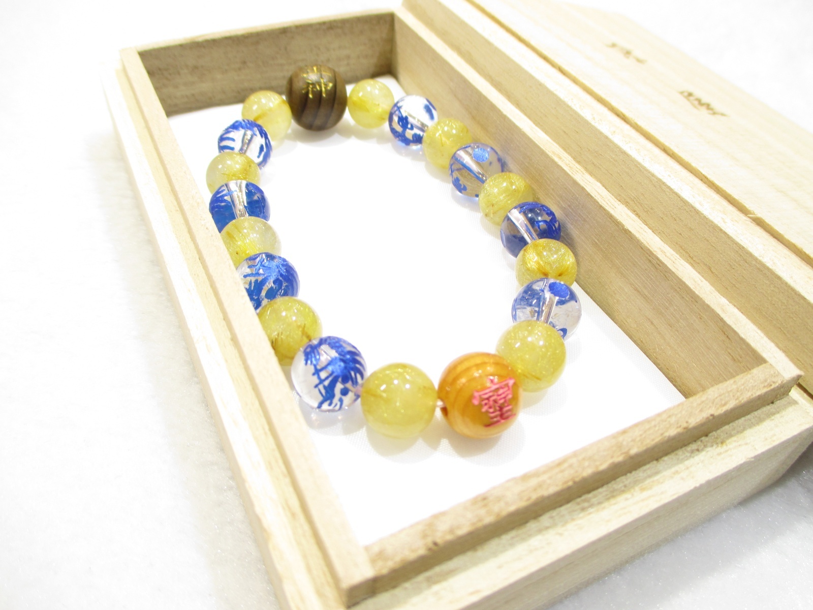 パワーストーン・京都/【金運、商売繁盛、家運隆盛、水難防止、子孫繁栄、五穀豊穣、社会的成功、必勝祈願】【八大龍王神】彫刻【神代杉】【そしじ(宗、主、神)】彫刻【柘植】【皇帝龍彫刻本水晶(八神)】【ゴールドルチルクォーツ】ブレスレット、桐箱付き【伏見の京屋】