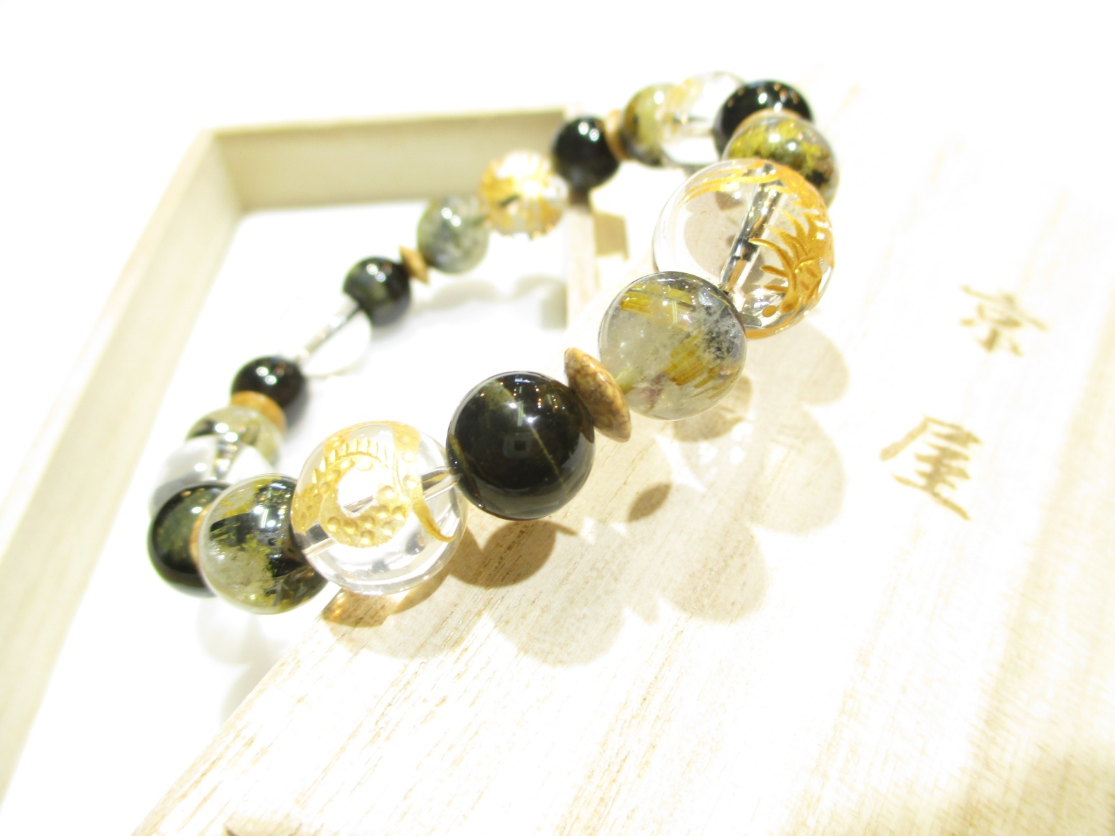 このブレスレットは『財・徳・守護・繁栄・智慧』の五徳を備えた帝王の守り珠京屋オリジナルブレスレットです。