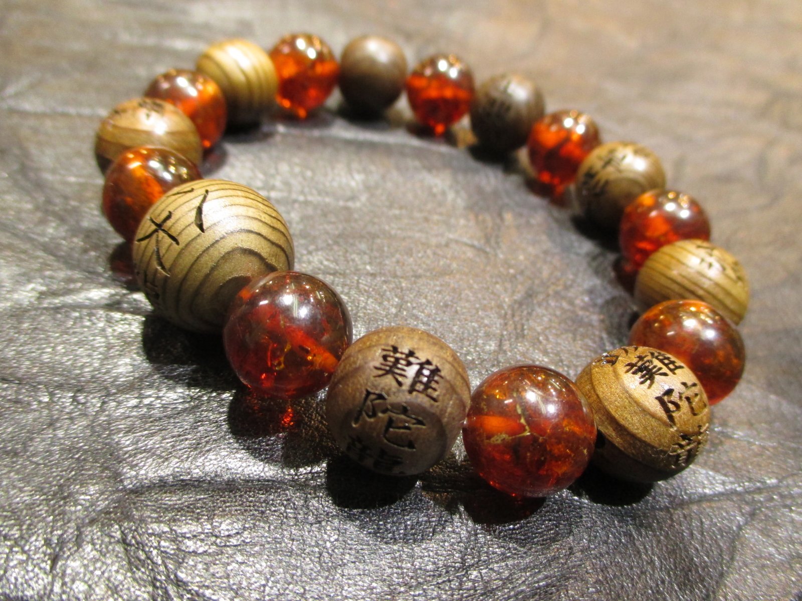 パワーストーン・京屋/【最強金運・商売繁盛、必勝祈願、恋愛成就、生命力、交渉力】【八大龍王神(難陀龍王・跋難陀龍王・沙伽羅龍王・和脩吉龍王・徳叉迦龍王・阿那婆達多龍王・摩那斯龍王・憂鉢羅龍王)】彫刻【神代杉(じんだいすぎ)】【アンバー(天然琥珀)】ブレスレット、桐箱付き【伏見の京屋】