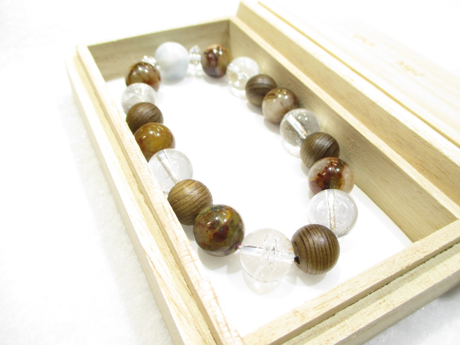 パワーストーン・京都/【癒し・夢・強力波動・健康】【ラリマー】【神代杉】【ピーターサイト】【ヒマラヤ産本水晶】【そろばん珠本水晶】ブレスレット桐箱付き【伏見の京屋】